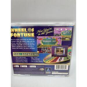 The product is the PlayStation 1 game "Wheel of Fortune" in its Greatest Hits version, complete in box and tested. This version is compatible with NTSC-U/C (US/Canada) region codes and is designed for the Sony PlayStation 1 platform. The game offers an interactive gaming experience based on the popular TV game show, allowing players to spin the wheel, solve puzzles, and compete against opponents in a fun and challenging format. Perfect for fans of the show or those looking for a classic gaming experience on the PlayStation 1 console.