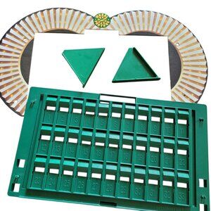 Vintage replacement parts for the classic Wheel of Fortune game. Includes board slide and stand, perfect for restoring your game or creating custom setups. Ideal for collectors or enthusiasts seeking original components.