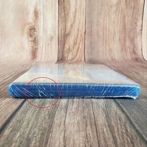 There is a small shrink wrap tear on the bottom. Top right area has a slight bent on the sleeve. Please see photos for details.
