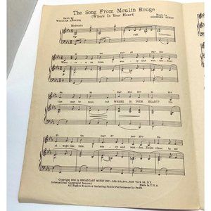 Where is Your Heart Song From Moulin Rouge Vintage Piano Sheet Music 1953