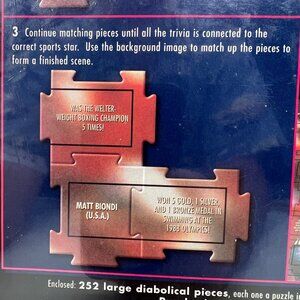 This puzzle challenges your sports knowledge and skill. Match pieces to unveil famous sports stars and their feats, featuring over 100 facts.