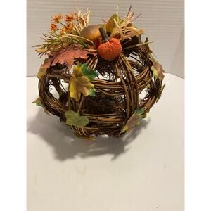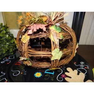 Whicker Pumpkin Shaped Basket, Fall Decor, Shelf Sitter, Mushroom, Leaves