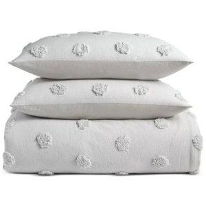 Each set includes one comforter and two shams. Shams have a zipper closure Thread count: 108 Tufted-chenille dot pattern Please note: Twin and Twin XL sets include one less sham Select specific item for fabrication, size and dimension details Imported