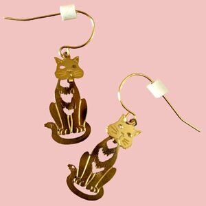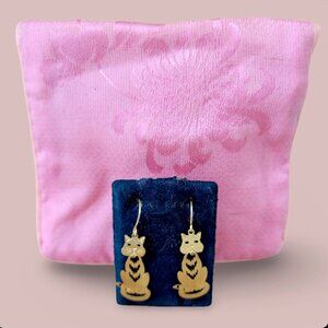 Each cat charm dangles from a classic gold hook wire with rubber stoppers for secure wear. The back is stamped 14K, verifying authenticity. Their lightweight feel and joyful character make them a delightful choice for everyday wear or a thoughtful gift for the cat lover in your life.