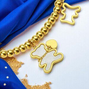 ๐๏ธWhimsical 18K Gold Plated Stainless Steel Bear Charm Beaded Dainty Bracelet