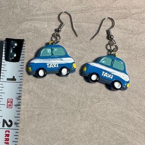 Whimsical Blue Taxi Car Earrings – Fun & Playful Statement Jewelry