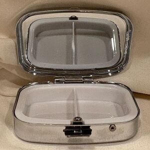 Gorgeous travel size bull with floral design pill case with 2 compartments, use for medicine, vitamins. Pocket or purse use, keep it in the car. Also has a mirror on inner lid. Made with shockproof durable metal outer shell that keeps meds and supplements safe from damaging moisture and oxidation. Great little gifts for hostesses, teachers, stockings, etc. I ship fast usually within a business day!