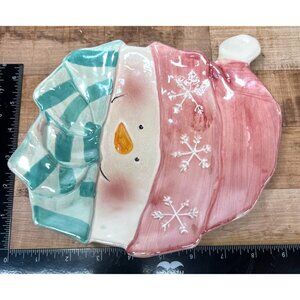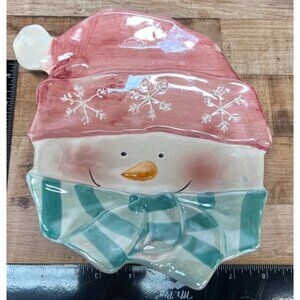 Whimsical Ceramic Snowman Serving Plate Winter Holiday Decor