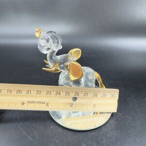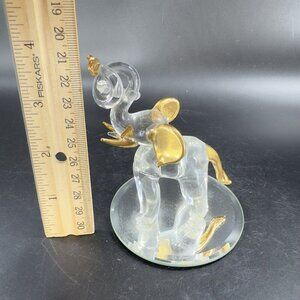Whimsical Clear Elephant Figurine With Gold Paint Mirror Base Figure Decoration