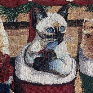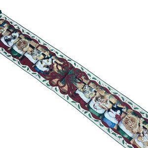 Whimsical Cozy Cats Christmas Tapestry Table Runner Kittens 13x73 Made In USA