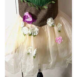 Transform into a whimsical fairy with this enchanting costume dress. Its tulle skirt, floral accents, and earthy tones create a mystical sexy look.
