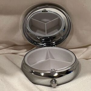 Gorgeous travel size fairytale fairy sprite pill case with 3 compartments, use for medicine, vitamins. Anti-slip backing. Pocket or purse use, keep it in the car. Also has a mirror on inner lid. Made with durable metal outer shell that protects from scratches and crushed medicine keeps meds and supplements safe from damaging moisture and oxidation. Great little gifts for hostesses, teachers, stockings, etc. I ship fast usually within a business day!