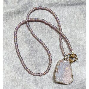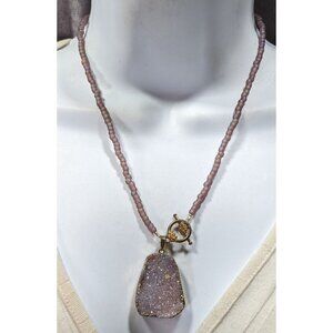 Whimsical Fairycore Purple Druzy And Frosted Glass Beaded Necklace