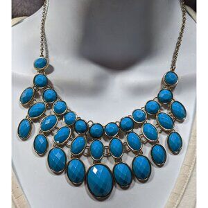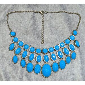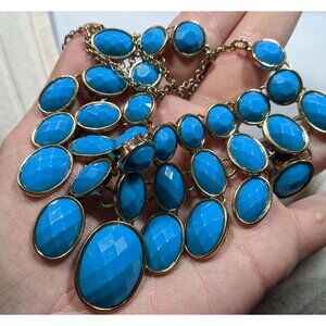 Whimsical Fantasy Blue Faceted Gemmed Bib Necklace