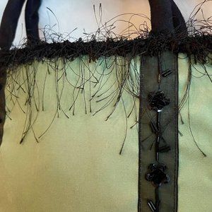 Fun and lightweight handbag / totebag / gift bag with fringe and beading.