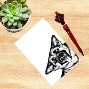 Whimsical German Shepherd Notecards with Peel and Stick Envelopes