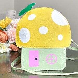 Whimsical Girl's Kids Mushroom Toadstool Fairy House Shaped Crossbody Purse Bag