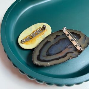 Whimsical Handmade One of a Kind Vintage XL Natural Stone Geode 2 Pc Brooch Lot