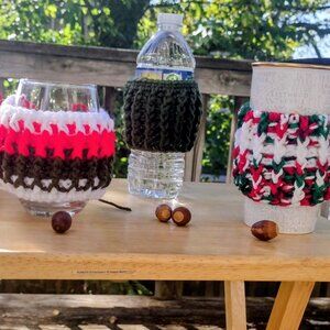 On the face of it what we have here are holiday colored cup cozies to keep your hands safe and comfortable whether you are rocking the iced or hot coffee/latte/tea.