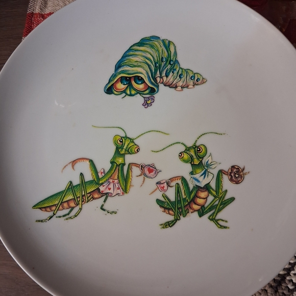 Plate featuring a whimsical insect design with vibrant colors. Perfect for adding a playful touch to your tableware collection.