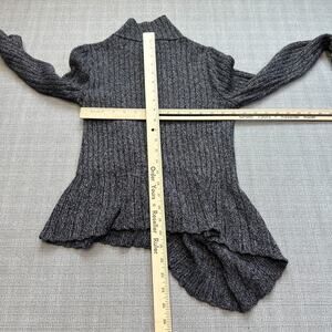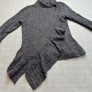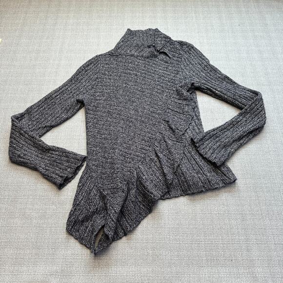 Whimsical Knitted & Knotted Gray Ruffle Wool Blend Sweater XS Asymmetrical Hem