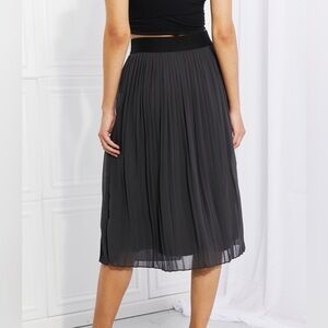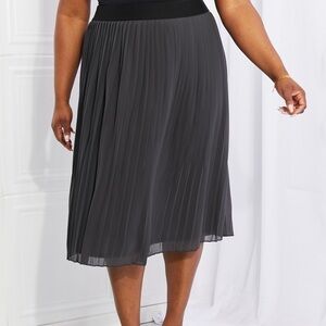 If you're looking for a versatile and comfortable skirt that doesn't skimp on style, look no further than the Whimsical Mesh Elastic Waist Skirt. This dark gray midi skirt features a pleated chiffon overlay that adds a touch of elegance to any outfit. It’s also mesh providing breathability and comfort on even the warmest of days.