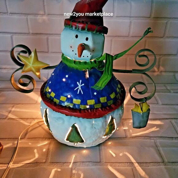Whimsical Metal Snowman Candle Lantern Holder Holiday Christmas Decor 13” Tall
