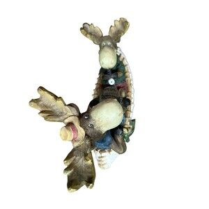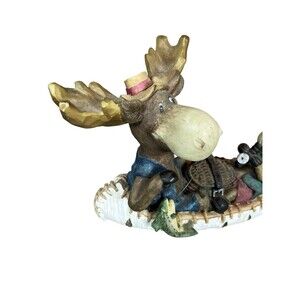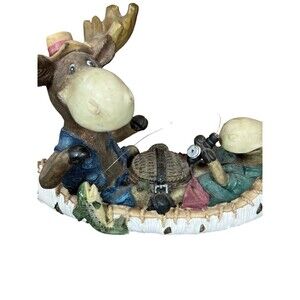 Whimsical Moose Fishing Canoe Figurine Resin Cabin Decor Lodge Rustic Funny