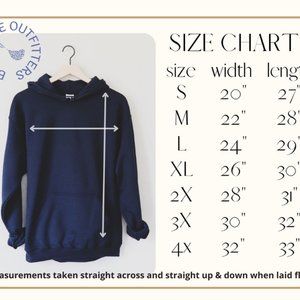Indigo blue hoodie (Gildan). Whimsical mushrooms motif. Unisex sizing. Size Medium. Detailed size chart provided in photos.