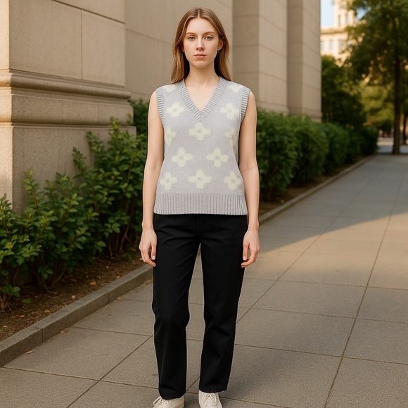 This delightful V-neck sweater showcases a charming mix of purple and white, highlighted by playful cloud-like patterns. Its medium-weight knit is ideal for layering or wearing solo in mild weather, ensuring both comfort and style.