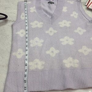 Whimsical Purple and White V-Neck Sweater