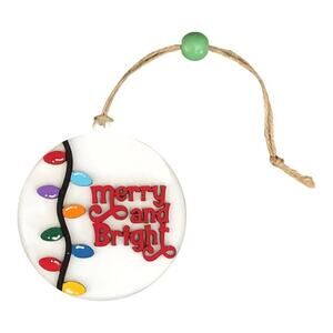 Merry and Bright ornament, hand painted wood, Christmas decor, whimsical holiday, unique ornament, handmade Christmas, holiday decor