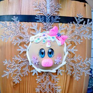 Add a touch of sparkle and sweetness to your holiday décor with these handcrafted foam clay ornaments! Each cheerful face is full of personality — from the pastel sprinkles and shiny bow to the glittery snowflake base that catches every twinkle of your tree lights. This is for a set of 2. Measures 13x11