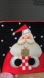The design features a cheerful Santa Claus holding a wrapped gift, set against a dramatic black background with white snowflakes. The colors are rich red, black, and white, making it a bold accent piece for your Christmas decor.