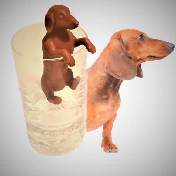 Whimsical Food-grade silicone brown dachshund tea strainer /infuser. New in unopen Box, perfect condition, never used.