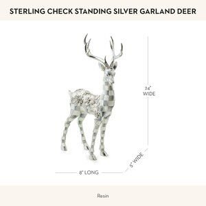 Features: Standing deer figurine with a playful gray-and-white check pattern and silver garland accents. Made of metallic-looking resin, it’s a sweet and festive touch for Christmas displays. Great for mantels, tables, or holiday collections.