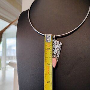 Gorgeous silver work. Pendant measures about 2 1/4" long x 1" wide. Chain is 18" long, and marked 925 Italy.