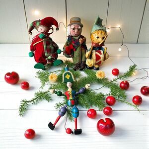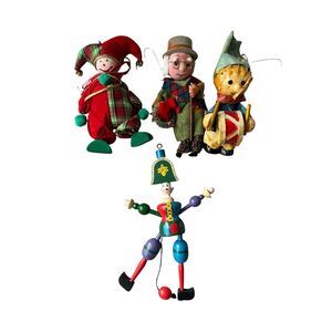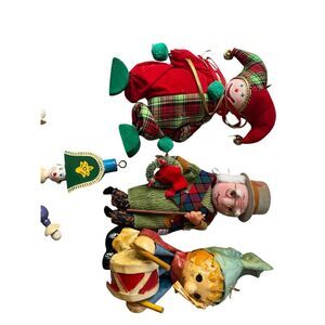 Whimsical Vintage Christmas Figurine ornaments Elf Caroler Drummer Boy & solider