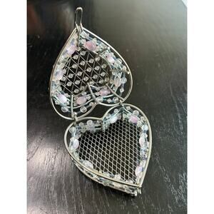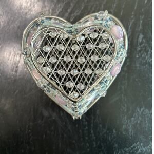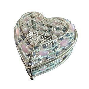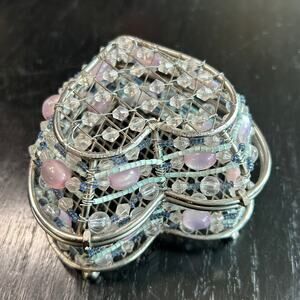 Whimsical Wire- Beaded- Heart Trinket Box with Lid- Pink blues- y2k- table decor