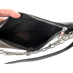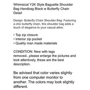 Whimsical Y2K Style Baguette Shoulder Bag Handbag Black w Butterfly Chain Detail