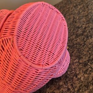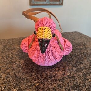 I had a hard time finding a similar one. This wicker basket bag is so adorable. It features leather handles and a flip lid