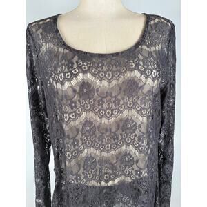 Whimsigoth Blouse Dark Romantic SIZE XL Gray Sheer Lace Tunic 90s Fairy Grunge