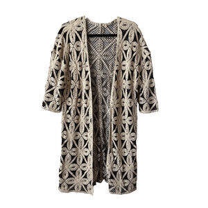 Whimsigoth Boho Women’s M Crochet Open Elbow Sleeve Open Handknit Cardigan