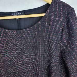 Whimsigoth Dress XL Sheath Midi Knit 3/4 Sleeve Black Colorful Metallic Retro Design Romantic Evening Wear Party