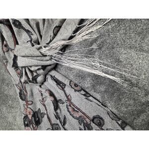 Whimsigoth Fairy Gray Sheer Floral Decorative Scarf With Fringe