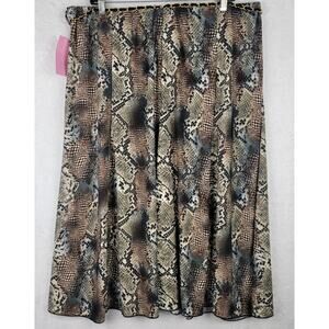 Women's Whimsigoth Midi 2X Skirt Lightweight Belted Snake Animal Print Pull On Dark Romantic Grunge Casual Office