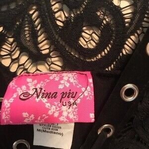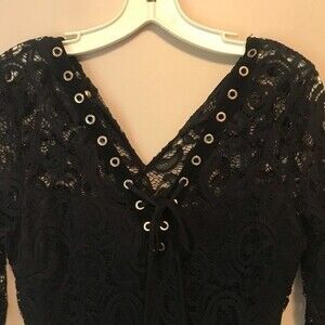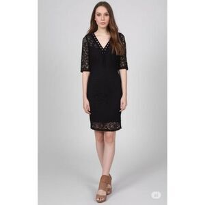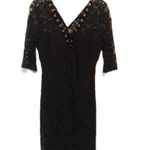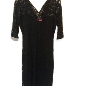 Nina Piu USA black lace overlay dress. Slightly stretchy. Super sexy. 3/4 sleeve, knee length.