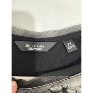 The Whimsigoth Sheer Black Simply Vera Wang Tank in size 2X is a plus-size, sleeveless top featuring a round neckline and floral pattern with embroidered details. Made from chiffon polyester, this tank is perfect for various occasions such as parties, formal events, and casual wear. With a relaxed fit and whimsical goth theme, this tank is a versatile piece that can be styled for different seasons, making it a must-have in any woman's wardrobe.