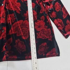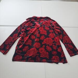Notations Shirt Womens Extra Large Black Red Floral Velvet Button Up Blouse Top