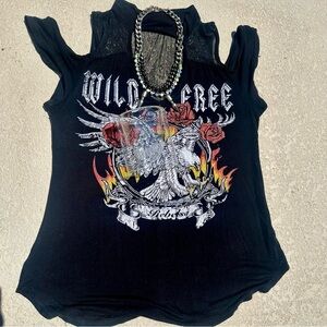 Soft distressed LIVE FREE shirt, stretch - fits M -L